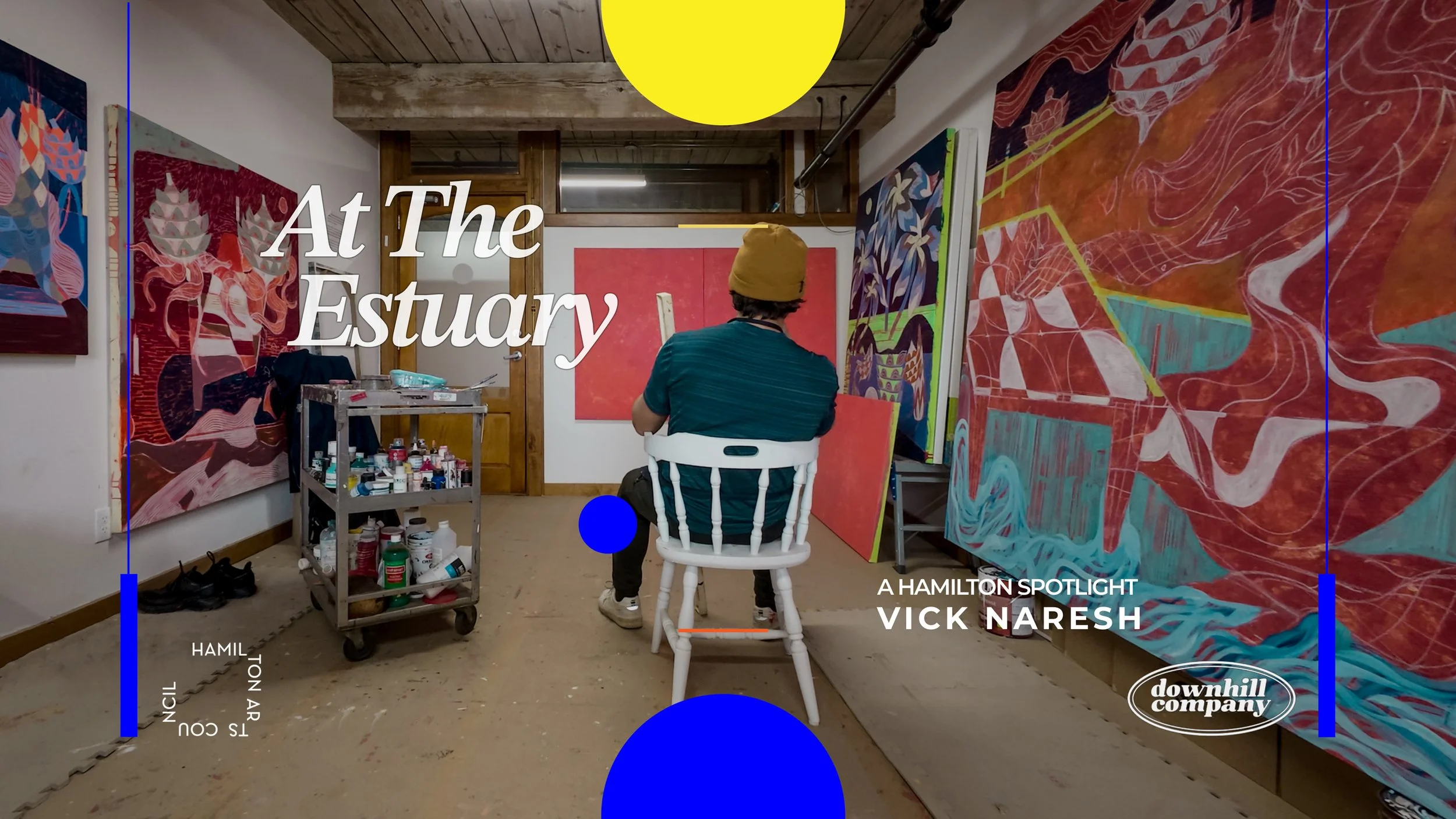 “At the Estuary” introduces the ideas and artistic process behind Vick Naresh’s solo exhibition Blooms of the Monsoon at Dianna Witte Gallery in Toronto. Filmed in his studio at the Cotton Factory in Hamilton, the documentary follows Naresh as he approaches painting as a place where memory and landscape intersect, drawing connections between land, water, and lived experience.